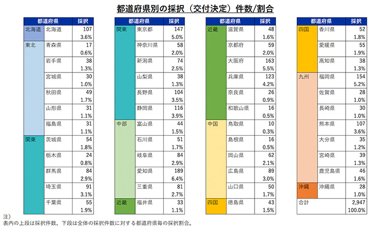 交付決定状況を都道府県別でみると、令和8年2月末時点の累計交付決定数は2,947件でした。