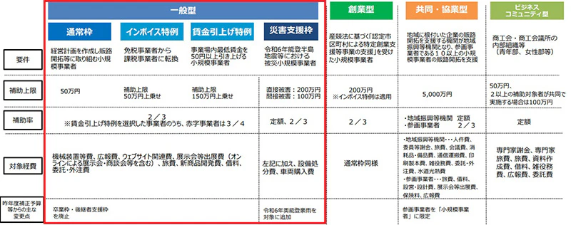 本補助金には、要件や補助対象経費に応じて、次の4つの区分があります。