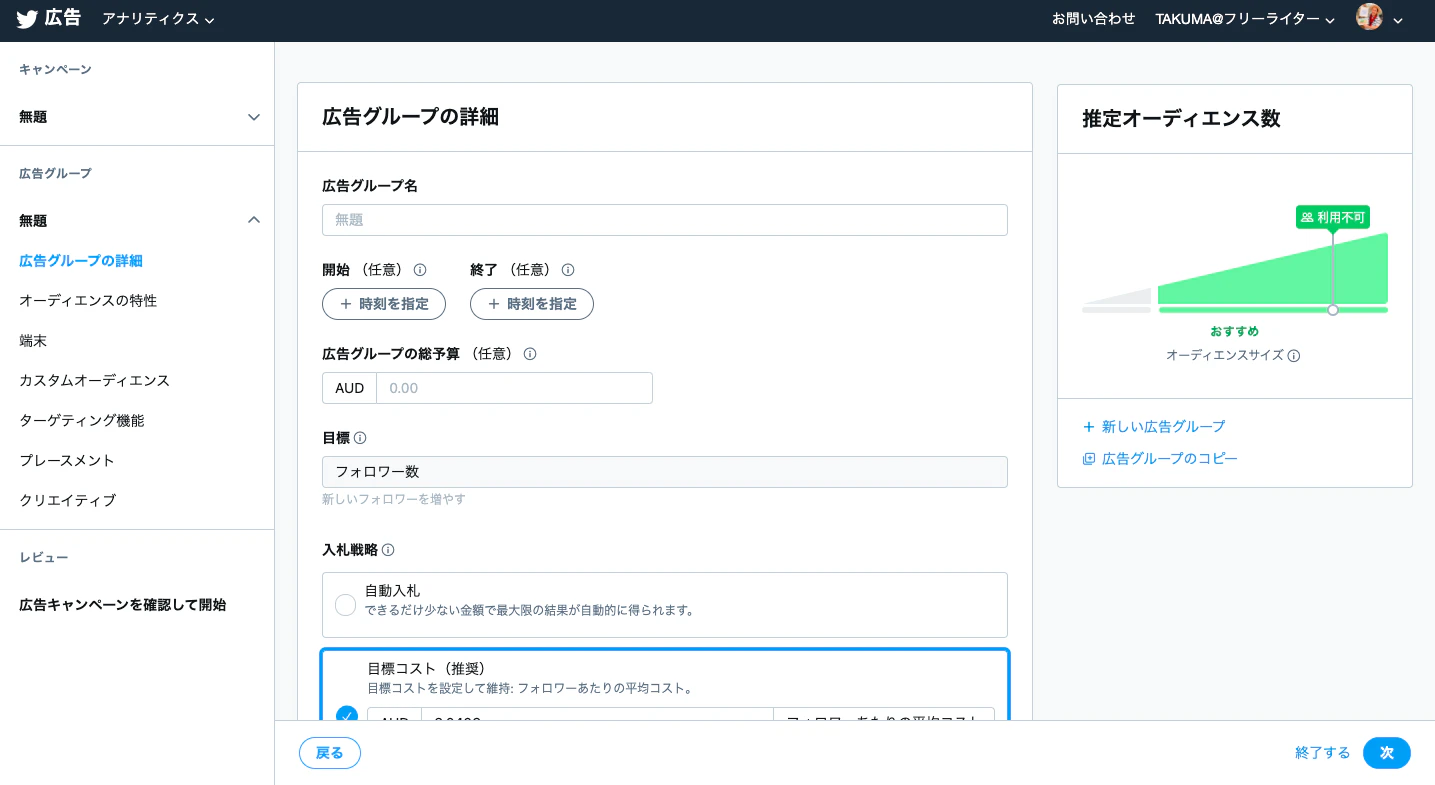面倒な入札額の設定がない分、初心者でも気軽にTwitter広告が打てる、というメリットがあります。
