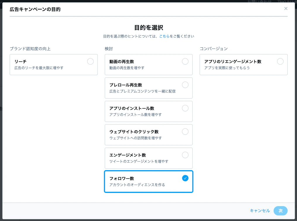 例えば、目的が「フォロワーを増やすこと」であれば、Twitter広告費はフォロワーが増えるごとに発生します。